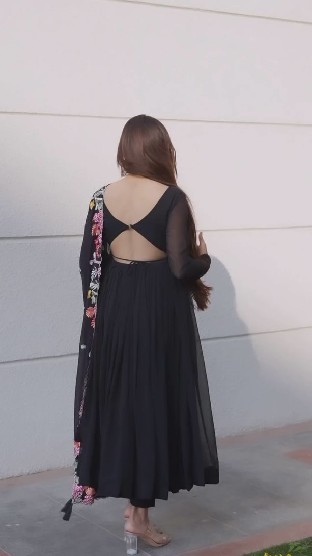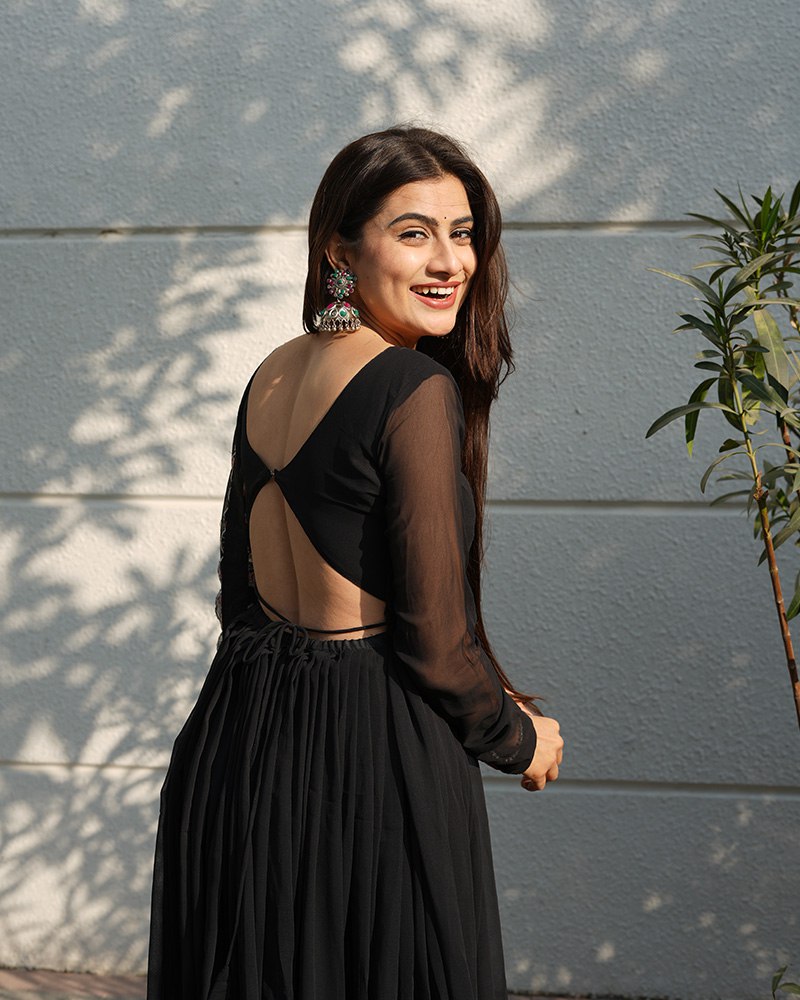 Khushi Verma in Black Colour Backless Anarkali Three Piece Suit