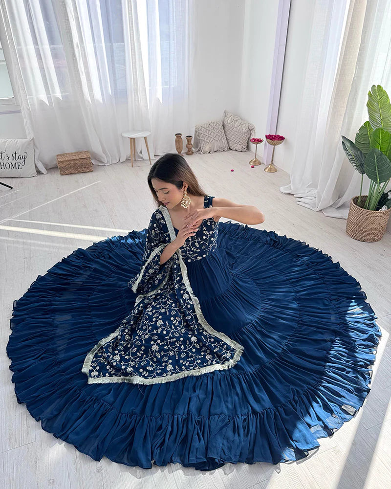 Rama Color Georgette Five Layer Ruffle Style Anarkali Suit