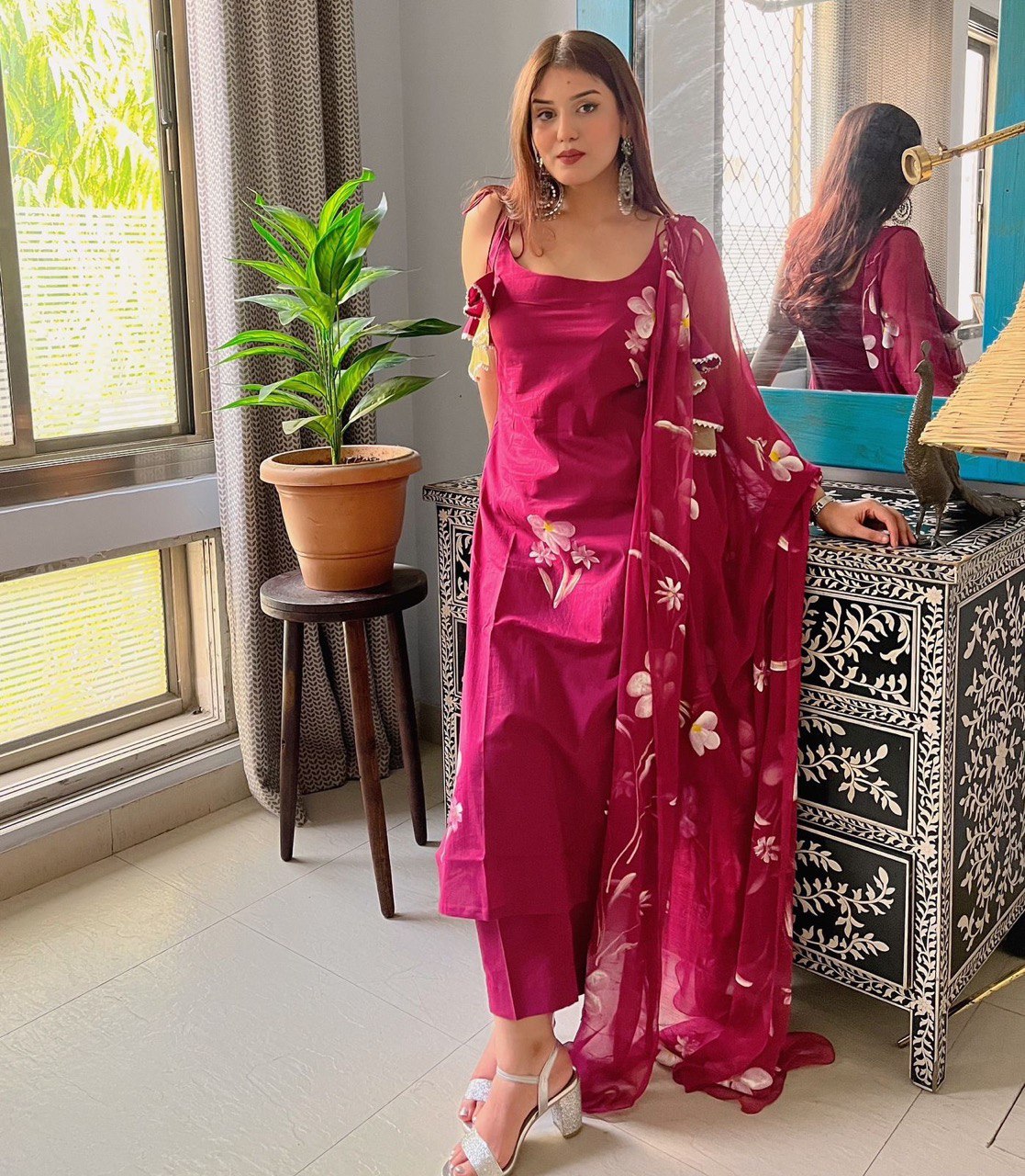 Dupatta Work : Georgette Floral handpainted 2 mtr dupatta