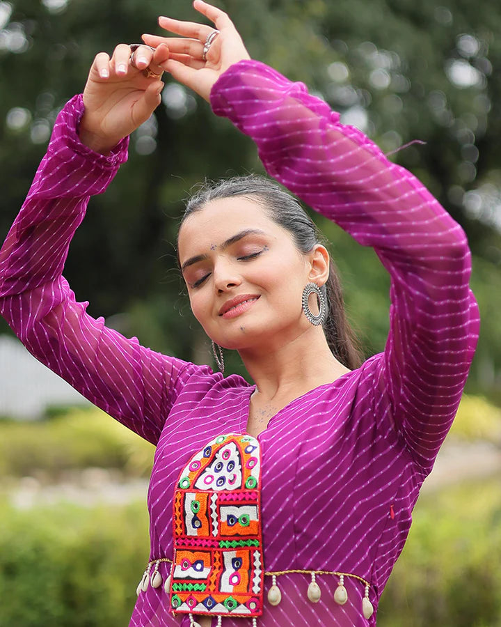 Pink Color Georgette Laheriya Print Navratri Kurti