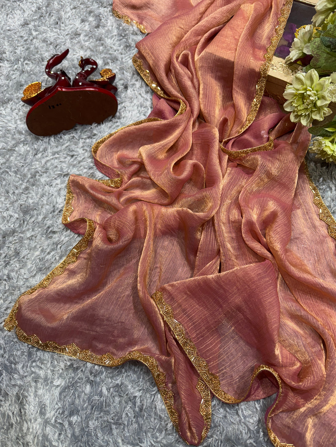 Alpng With Beads Hand Work Rich Border Look And Chfforn Fendy Soft Saree