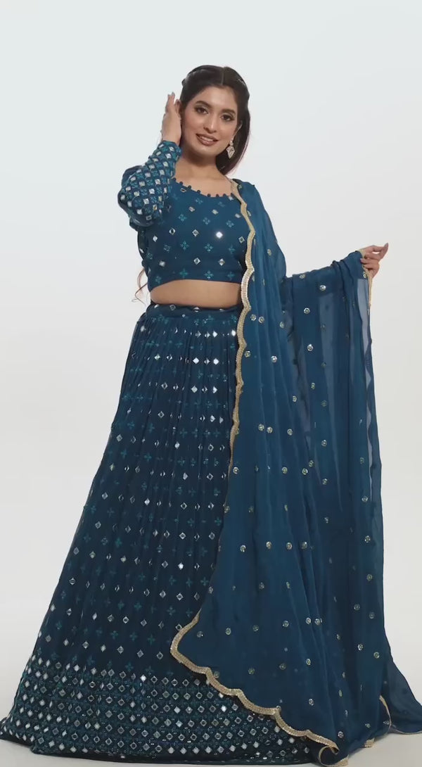 Beautiful Designer Blue Soft Georgette Lehenga Choli