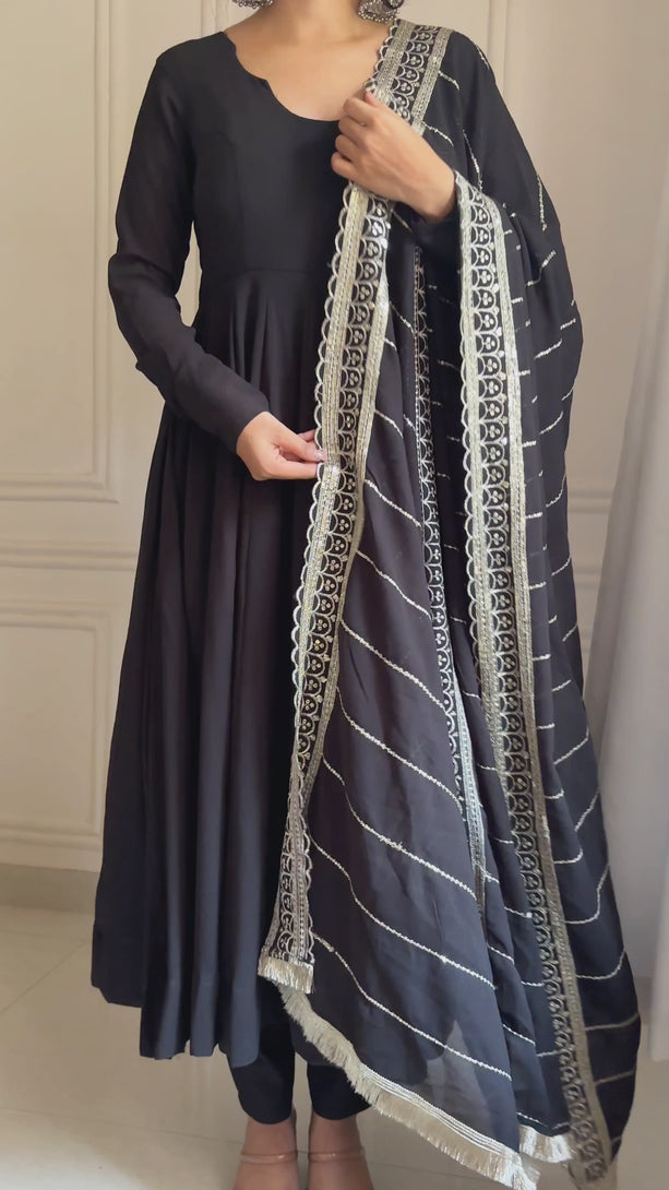 Black Color Georgette Anarkali With Embroidered Dupatta