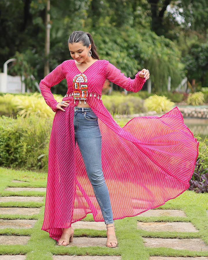 Black Color Georgette Laheriya Print Navratri Kurti