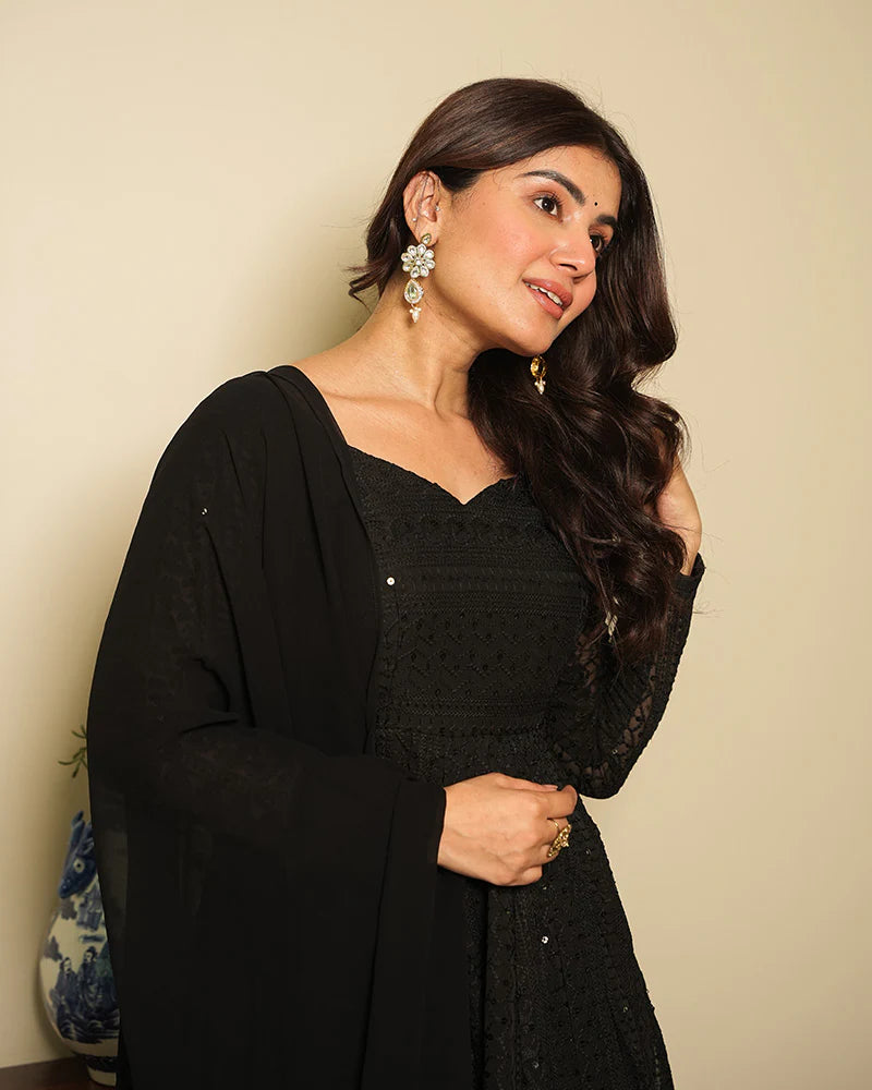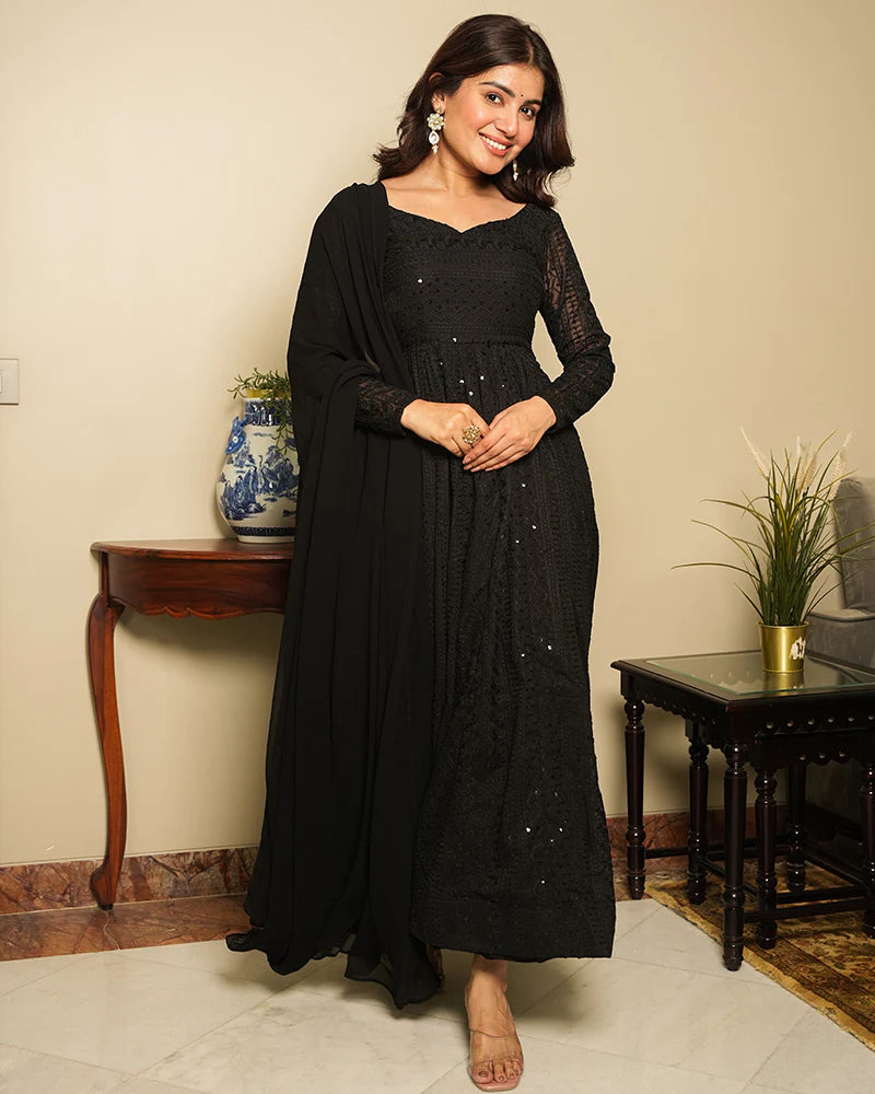 Black Color Georgette Lucknowi Three Piece Anarkali Suit