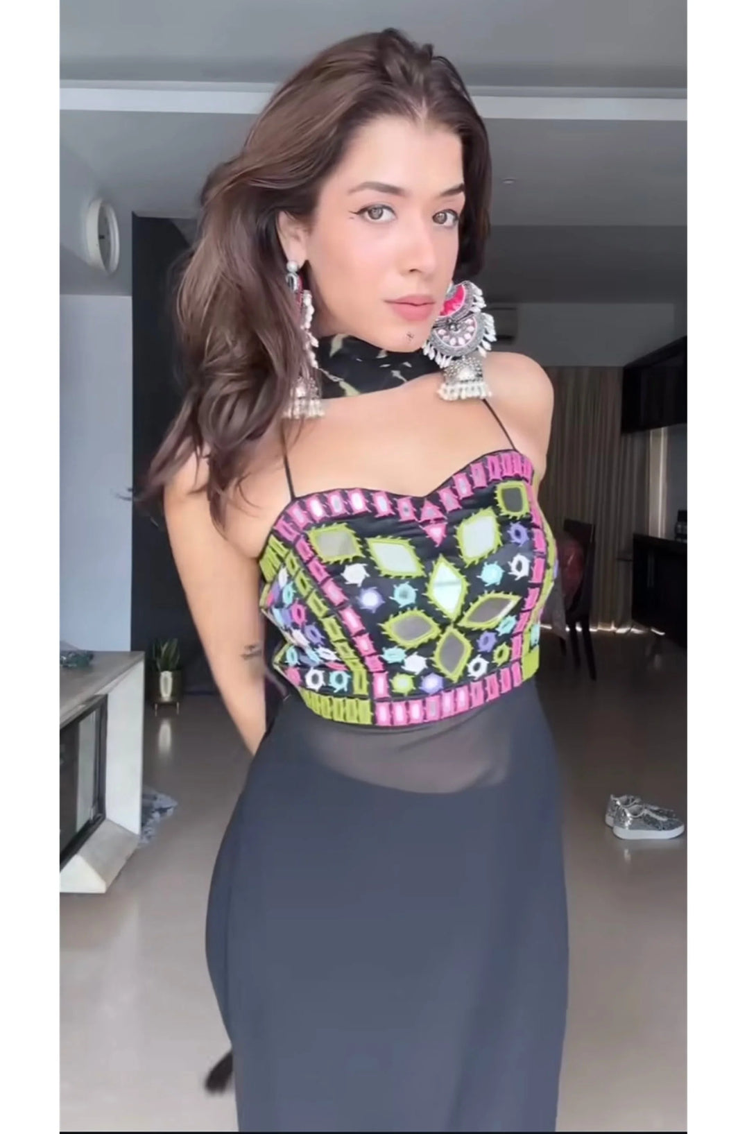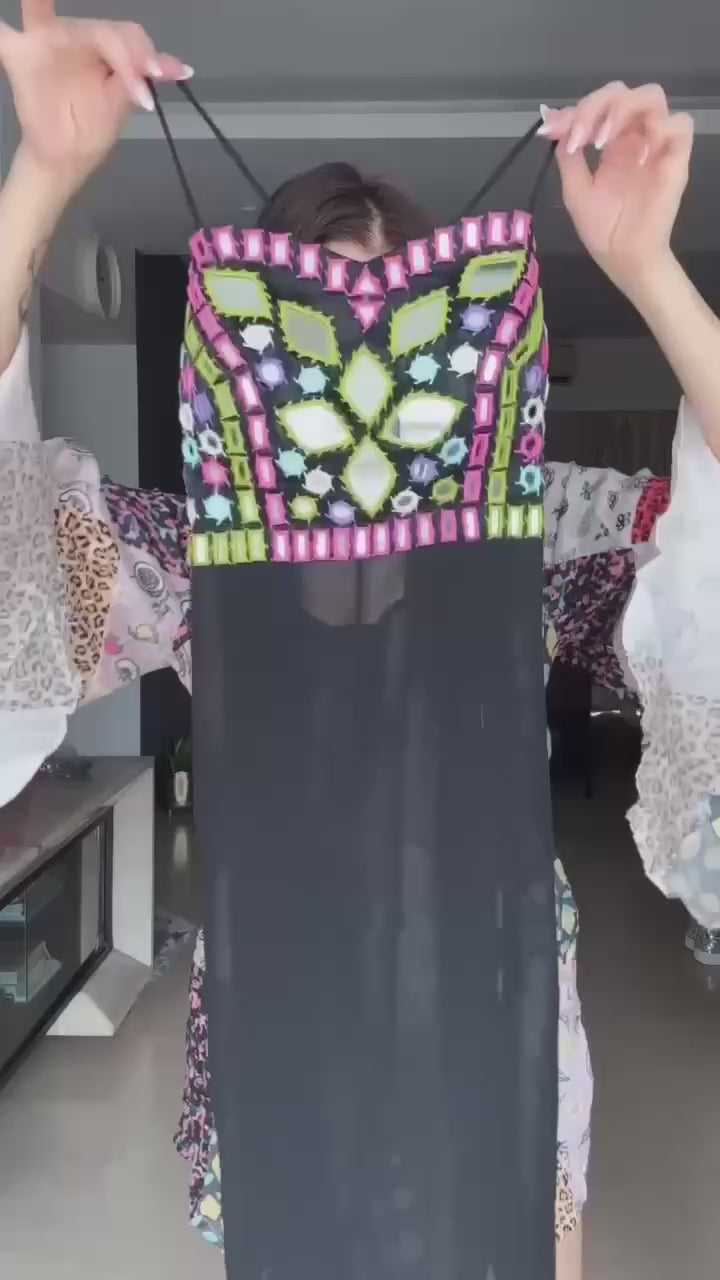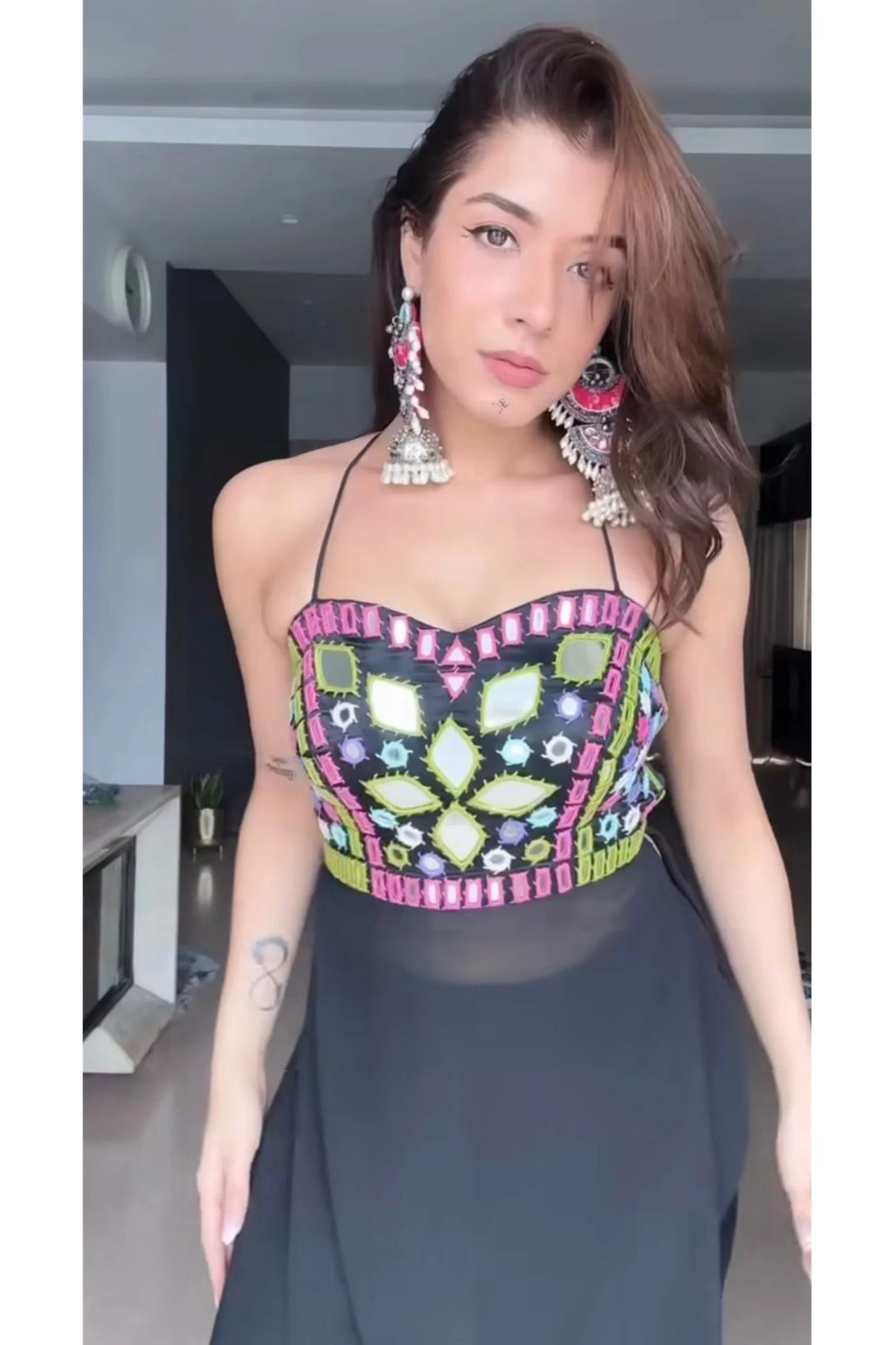 Black Colour Real Mirror Navratri Kurti 3 pic Set