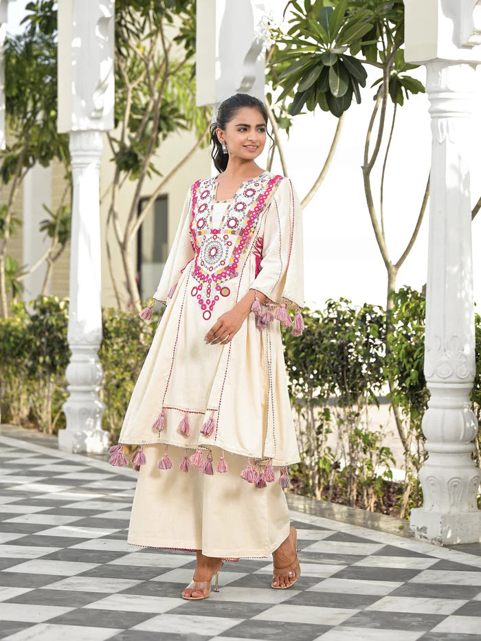 Work : Heavy Embroidery Thread & Sequence Work With Real Mirror Work