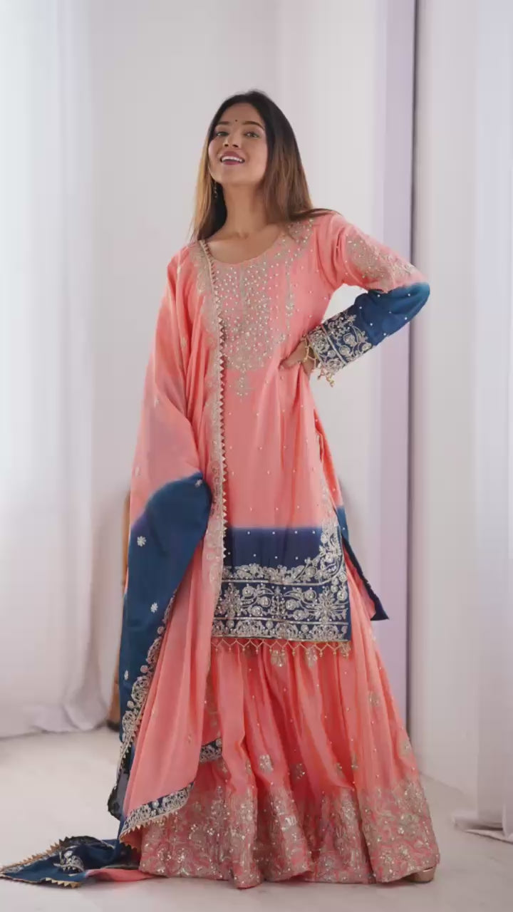 BOMBAY PINK COLOR GRACEFUL DUAL SHADED SHARARA SETS