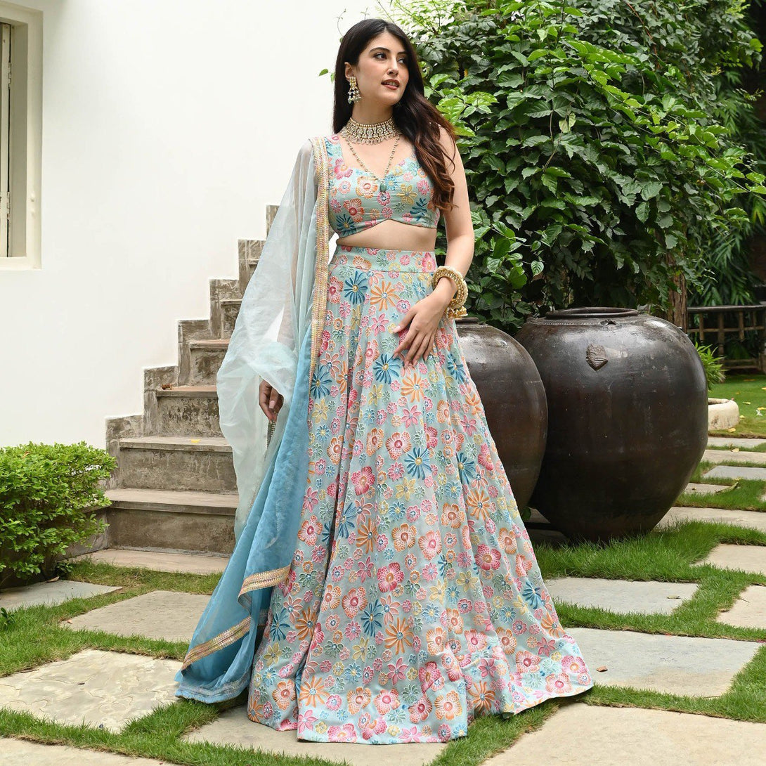Delightful Digital Print With Hook Beads Work Lehenga Choli