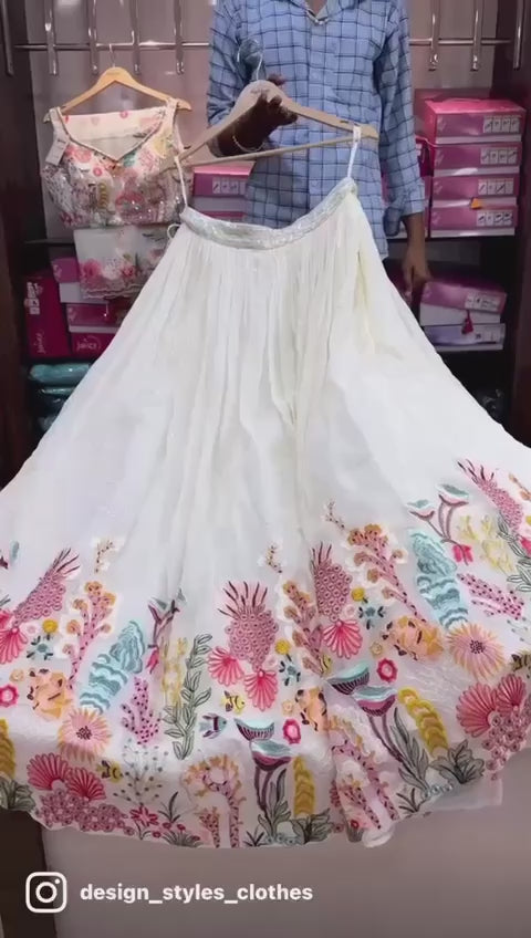 Delightful White Color Multi Thread Designer Heavy Lehenga Choli