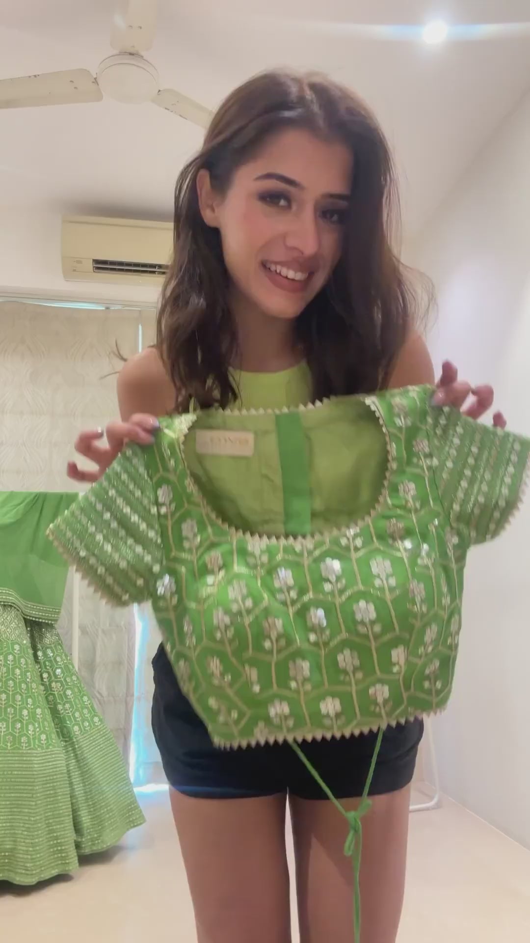 Designer Green Paper Mirror Zari Embroidery Lehenga Choli