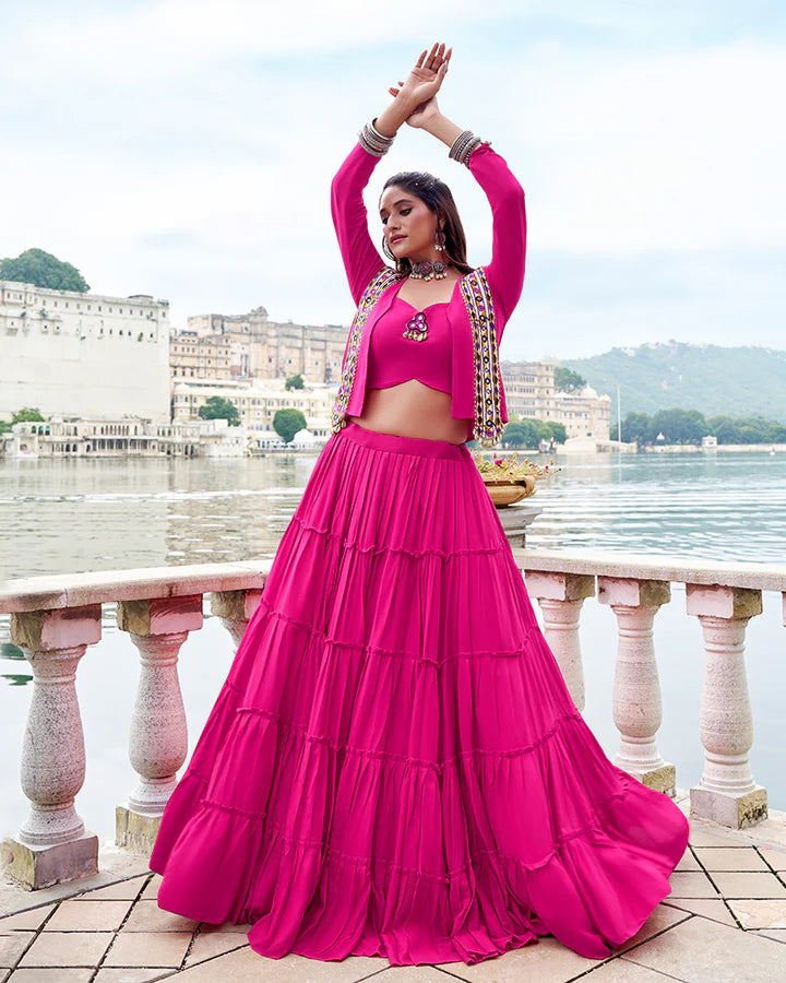Elegant Pink Color Pure Rayon Navratri Lehenga Choli