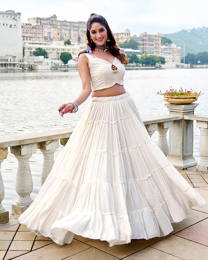 Elegant White Color Pure Rayon Navratri Lehenga Choli