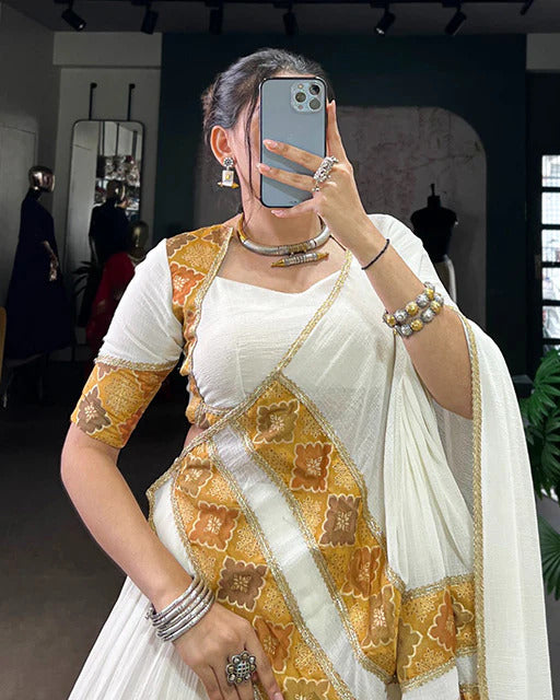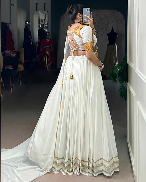 ELEGANT WHITE MARBLE FABRIC NAVRATRI LEHENGA CHOLI