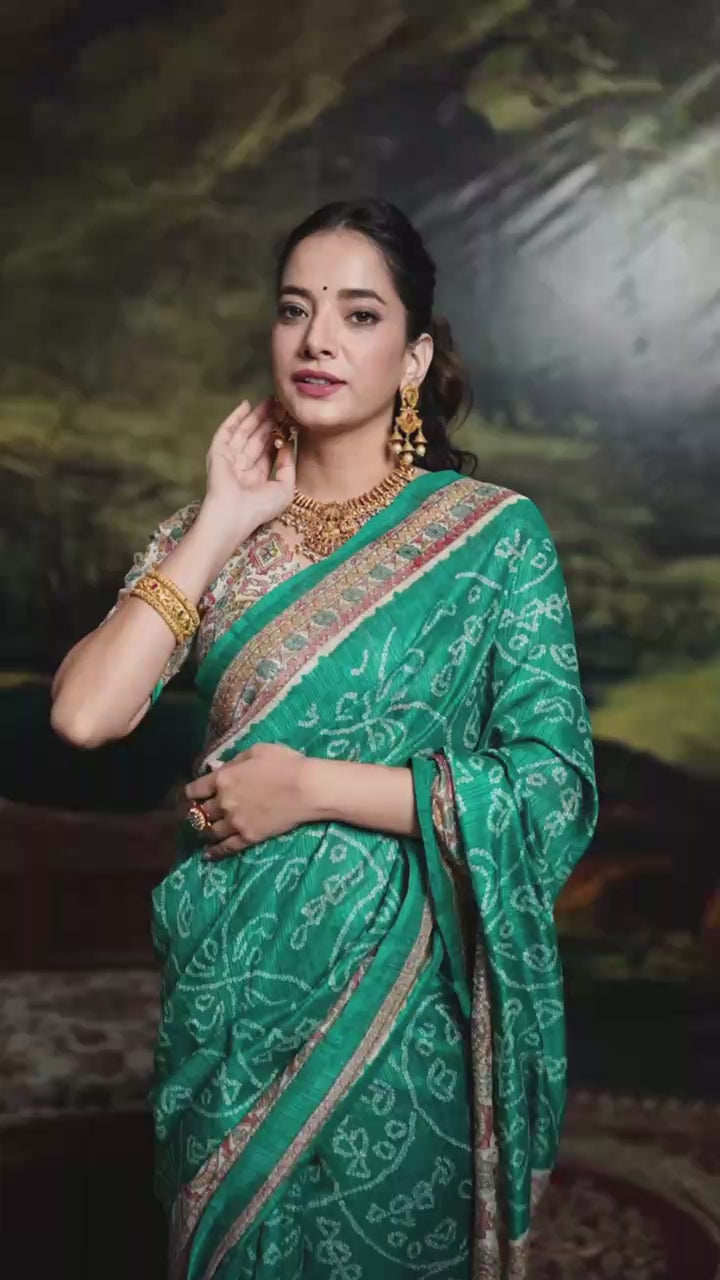 Green Color Silk Fusion Print Of Madhubani And Bandhej Saree