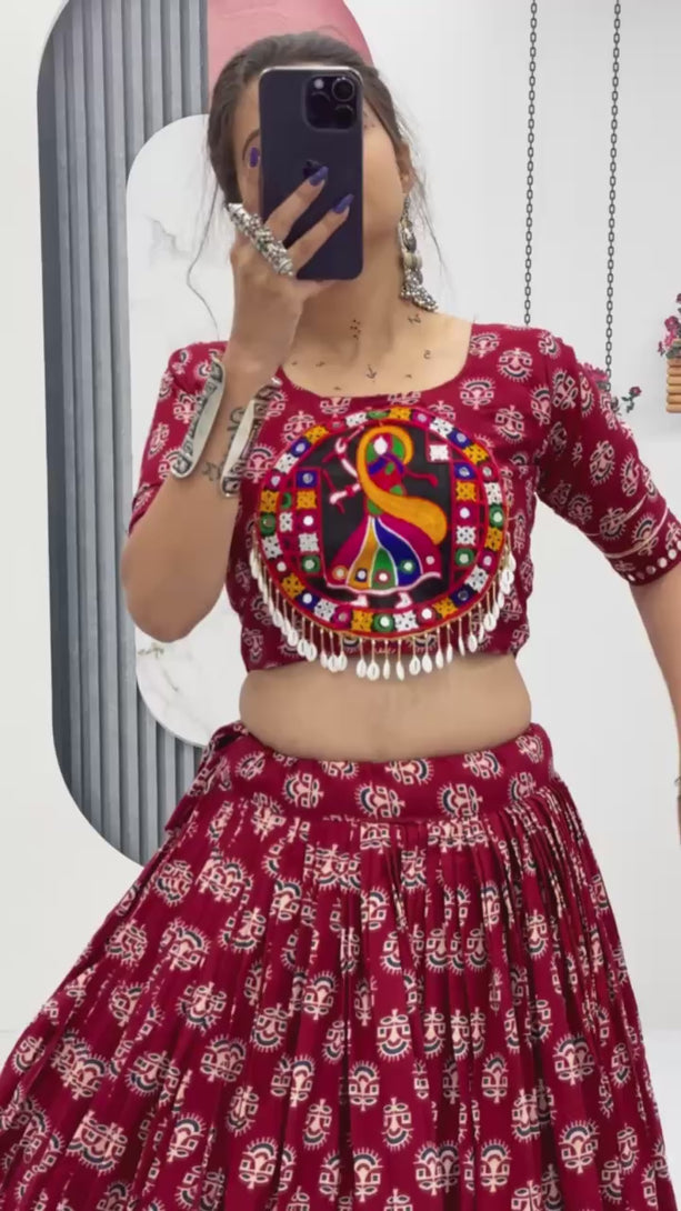 Maroon Colour Navratri Special Pure Cotton Lehenga Choli