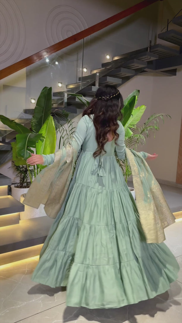 Pista Color Pure Chanderi Silk Frill Style Anarkali Suit