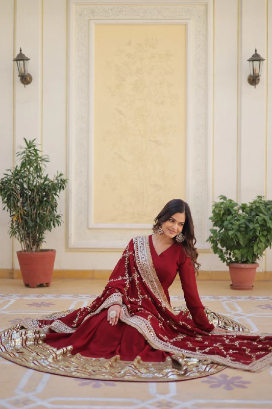 PREMIUM READYMADEFAUX BLOOMING SEQUENCE EMBROIDERED GOWN WITH DUPATTA SET
