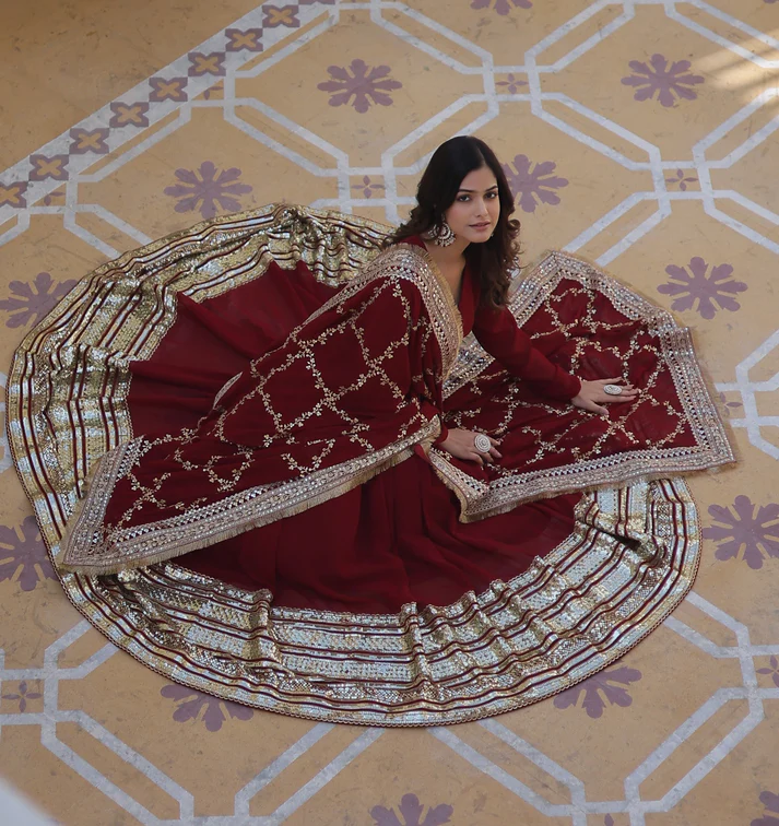 Dupatta Work : 2.3 Meter Faux blooming With Sequins Embroidered work with designer lace border