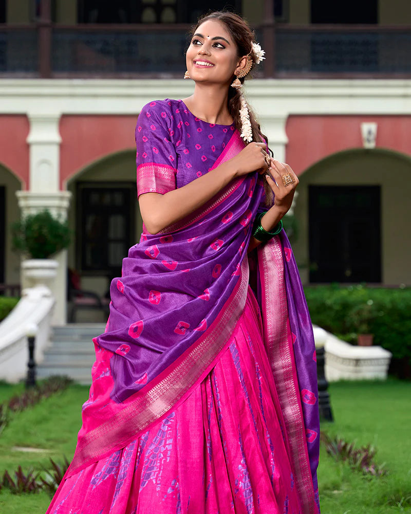 Purple Color Dola Silk Shibori Print Lehenga Choli