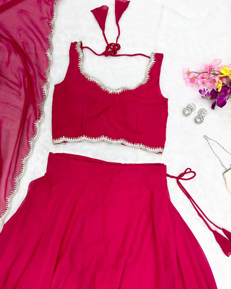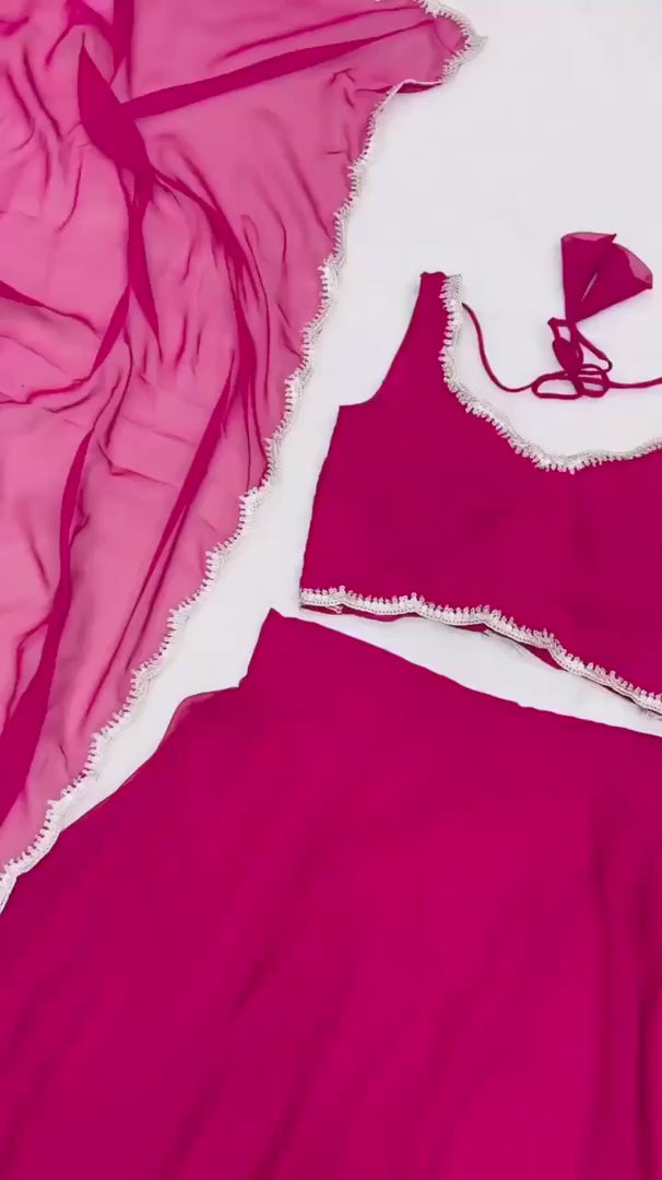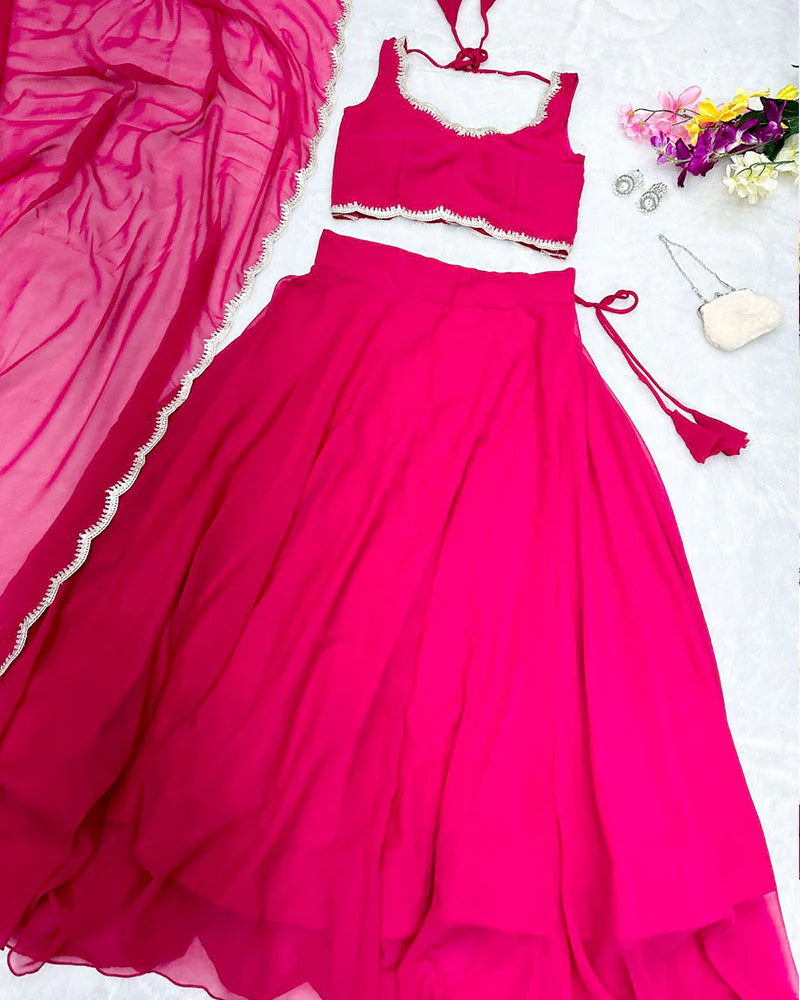 Rani Pink Color Full Flair Pure Georgette Full Stitched Lehenga Choli