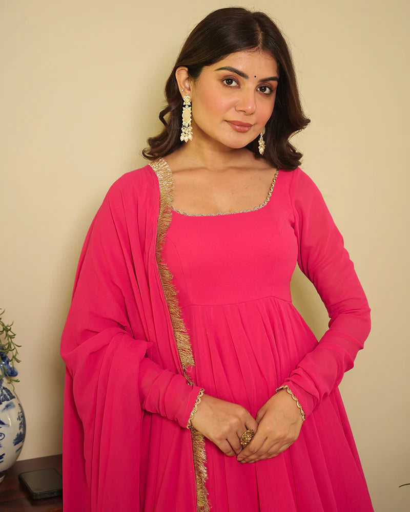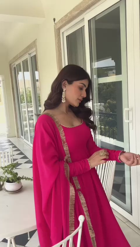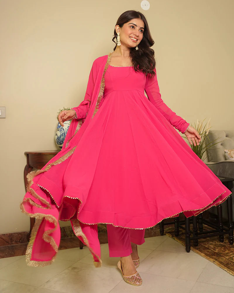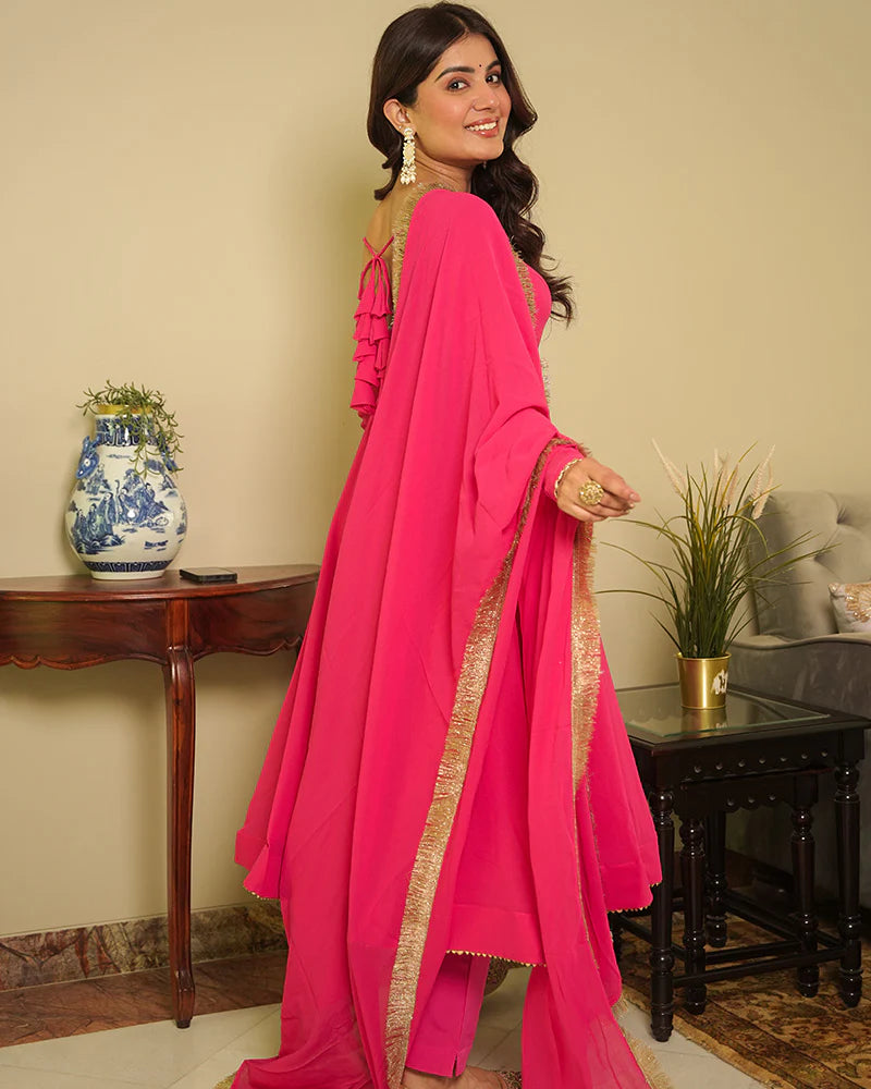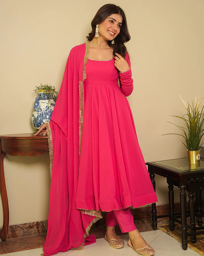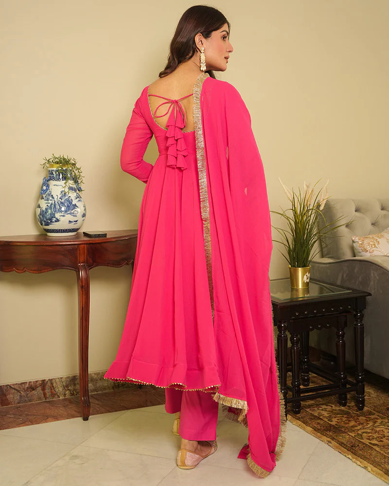 Rani Pink Color Georgette Three Piece Anarkali Suit
