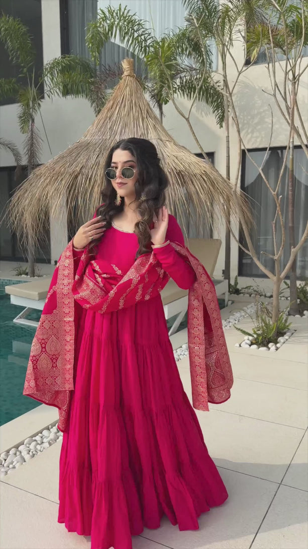 Rani Pink Color Pure Chanderi Silk Frill Style Anarkali Suit