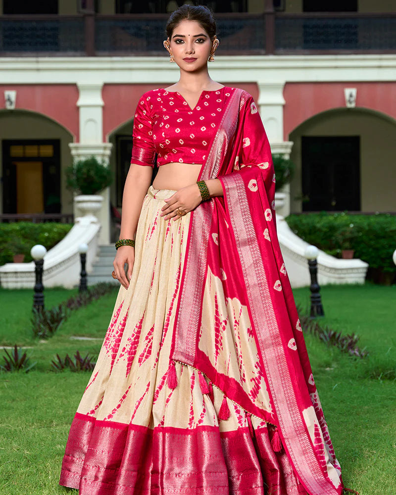 Red Color Dola Silk Shibori Print Lehenga Choli