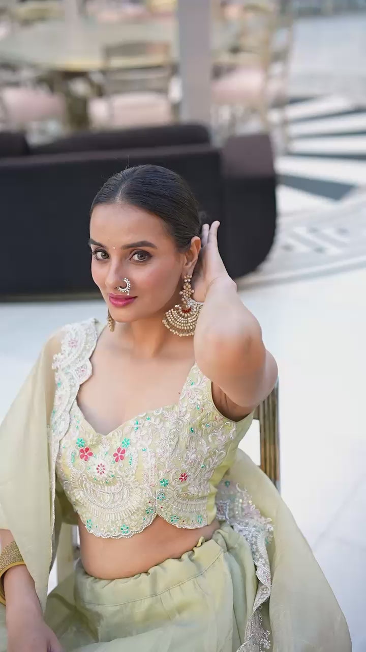 Shining brighter Gold Crush light green Lehenga