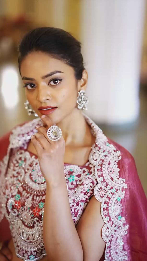 Work : Sequins and Thread Embroidery Work With Embossed Design Lace