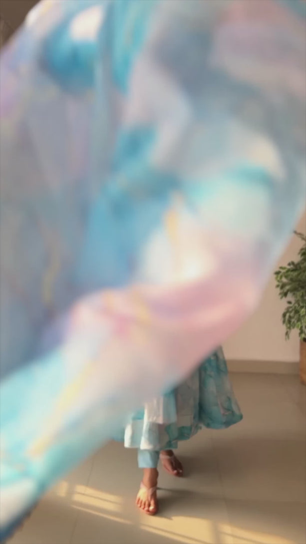 Sky Blue Color Pure Soft Organza Three Piece Anarkali Suit