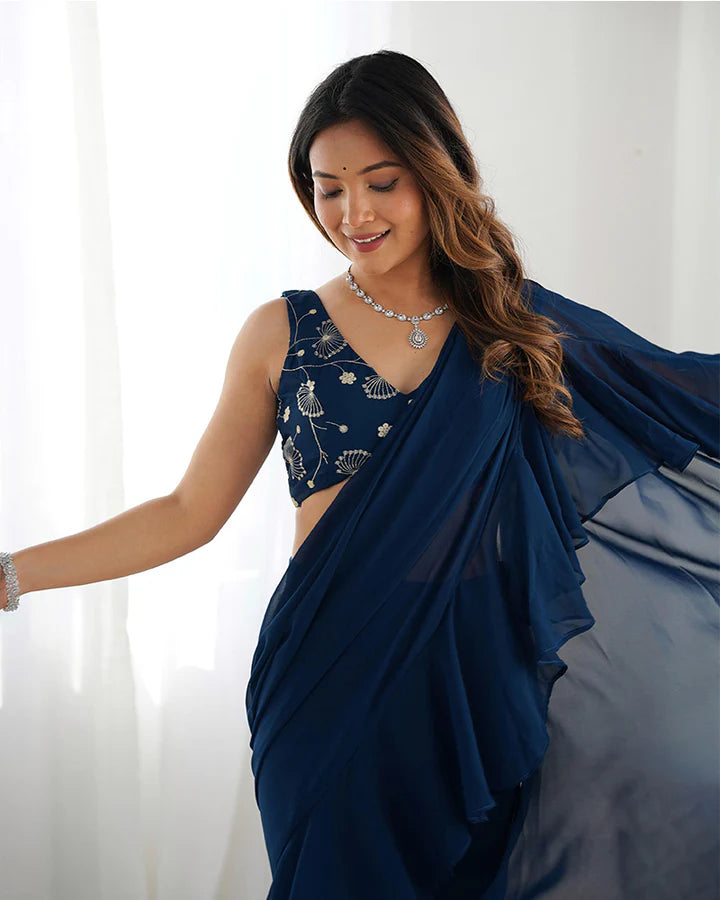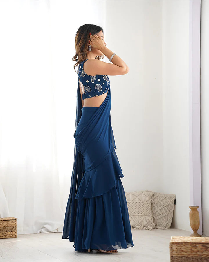 Teal Blue Color Faux Georgette Fancy Sharara Saree