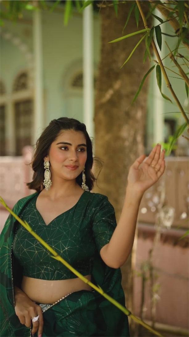 Tussar Silk Printed Lehenga Choli Green Colour with Duppta