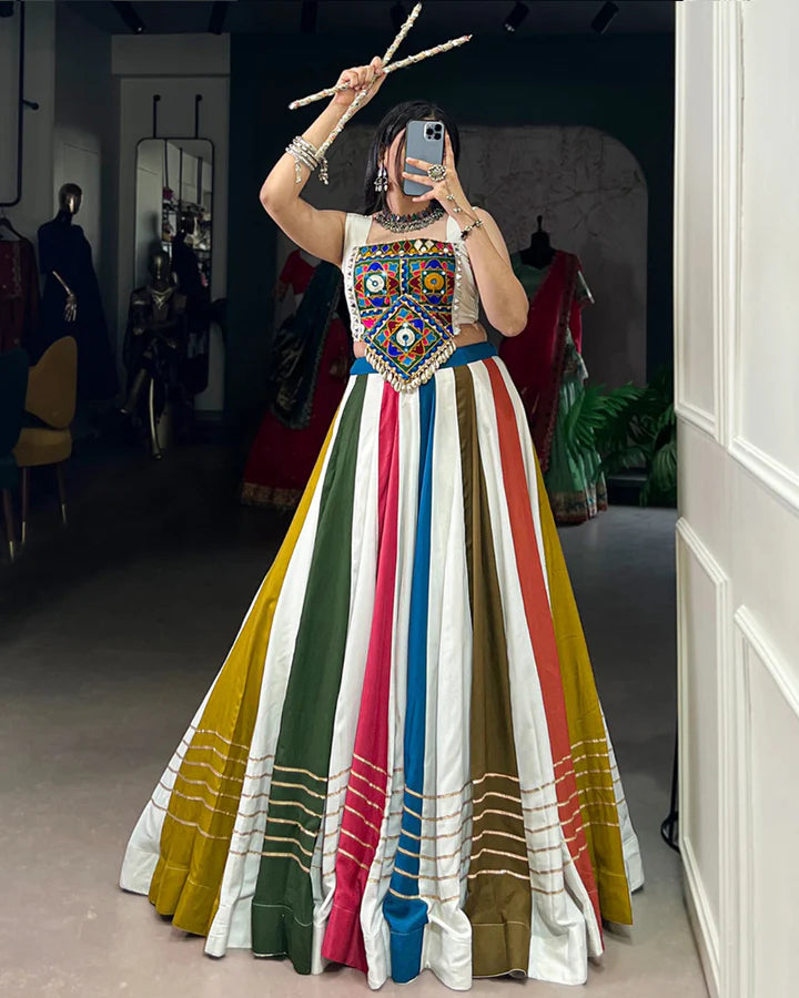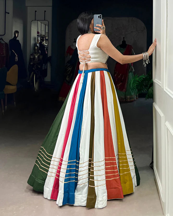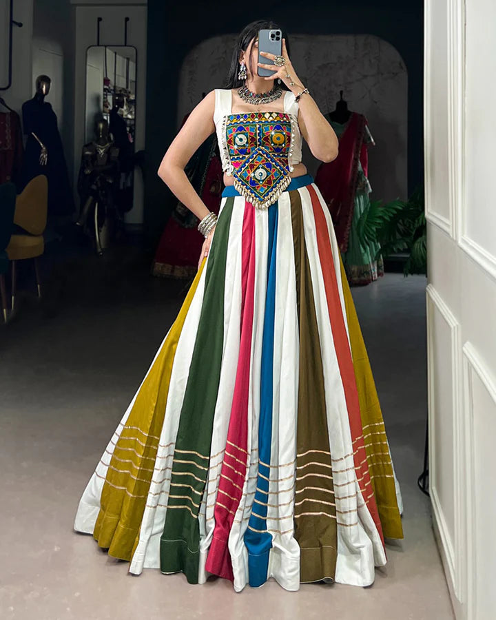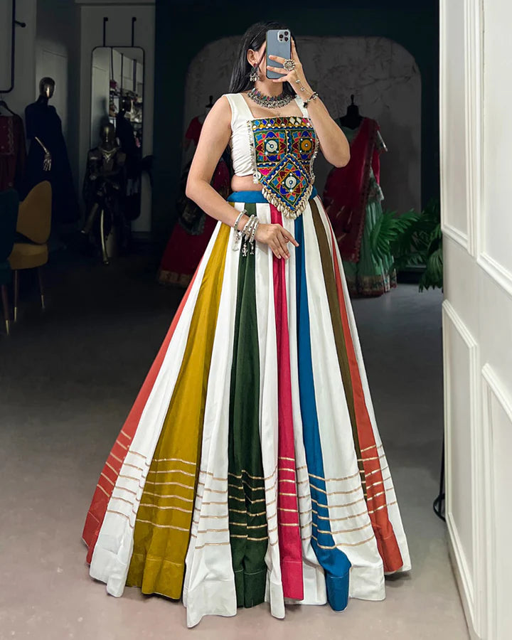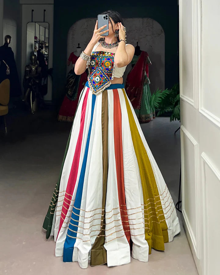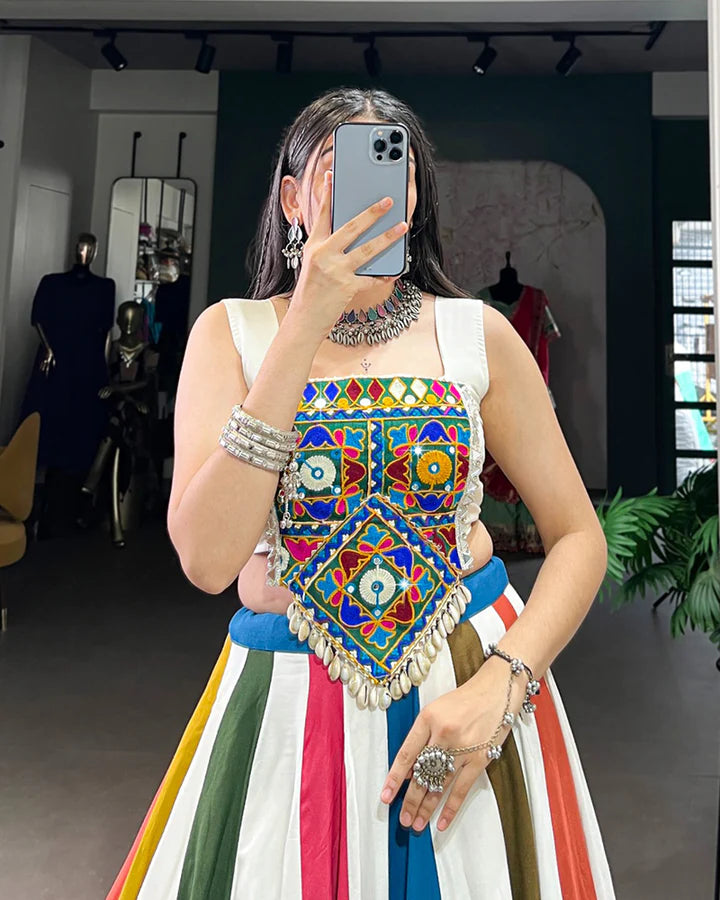 White Color Rayon Navratri Cowrie Touch Up Lehenga Choli