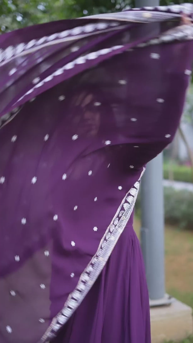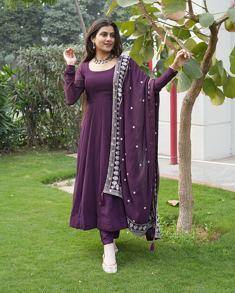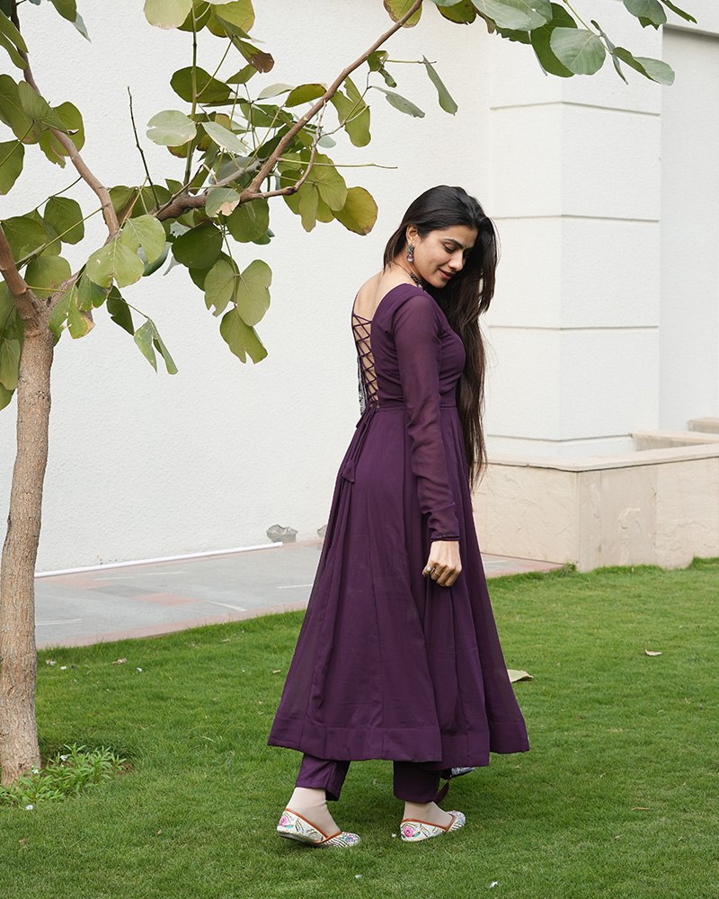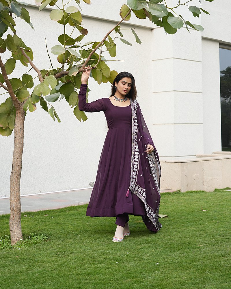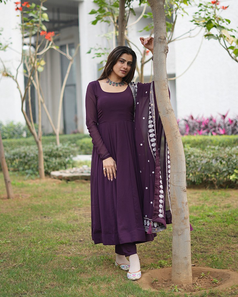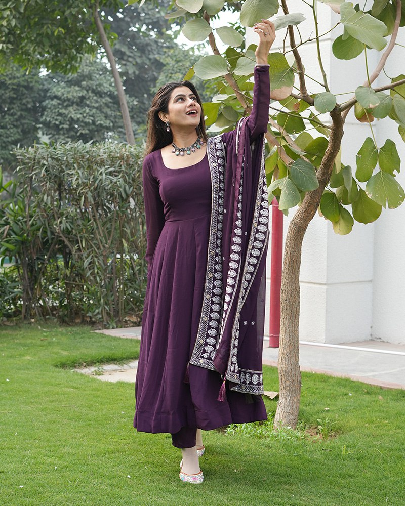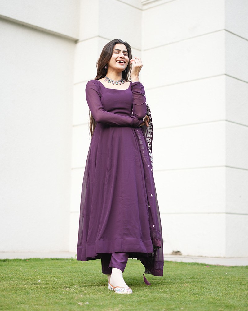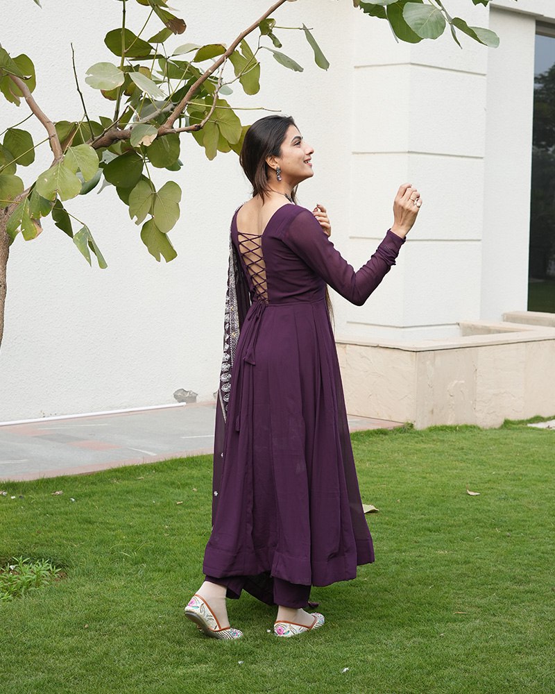 Wine Purple Color Three Piece Soft Georgette Anarkali Suit